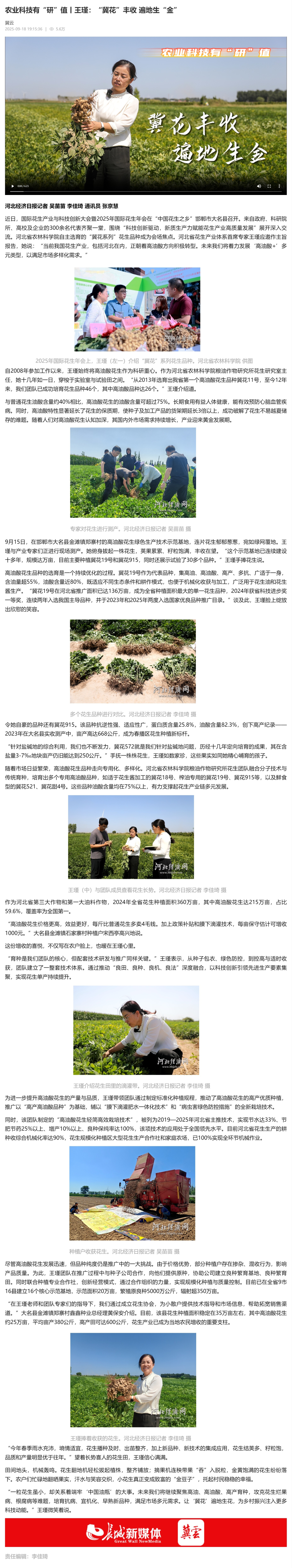 “针对盐碱地的综合利用,我们也不断发力,冀花572就是我们针对盐碱地问题,历经十几年定向培育的成果,其在含盐量3-7‰地块亩产仍旧能达到250公斤。”手抚一株株花生,王瑾如数家珍,这些果实如同她精心哺育的孩子。