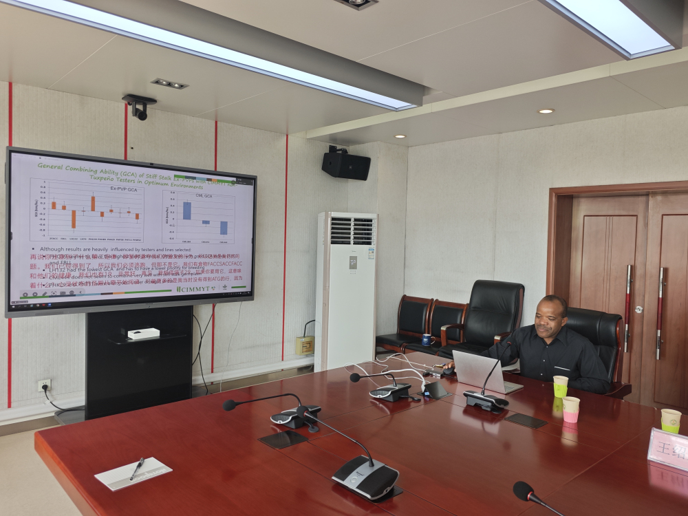 8月30日上午,Thanda博士以 “利用过植物品种保护期的温带种质作为开发高产短季热带和亚热带玉米杂交种的关键资源” 为题作了报告,系统介绍了CIMMYT利用温带种质改良热带自交系的实践,通过将Ex-PVP等种质引进到CIMMYT热带种质当中,改良其产量等性状,缩短生育期,扩大杂种优势群实践的距离。对大家提出的如何利用热带玉米改良温带种质的方法、在改良的过程中如何保持热带资源的抗性、全基因组在CIMMYT育种中的应用等进行现场咨询和指导,现场气氛高涨,讨论热烈。河北省玉米种业创新团队课题主持人及主要成员通过网络参加了会议的报告阶段。