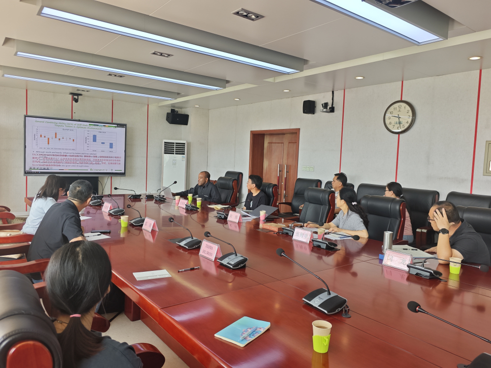之后Thanda博士与粮油所玉米中心的科技人员进行了充分的交流,并参观考察了位于粮油所试验站的热带种质资源鉴定圃。在听取玉米中心科技人员介绍在玉米分子辅助育种及重要性状定位等方面的工作和从CIMMYT引进的热带玉米自交系及其与骨干亲本杂交种的田间种植和表型调查情况后,Thanda博士对比分析了这些热带玉米种质在墨西哥本地与黄淮海地区的表现差异,指出其优缺点,并给出了利用温带种质进行两次回交,同时施加严格筛选,以获得适应本区域环境的改良种质建议。