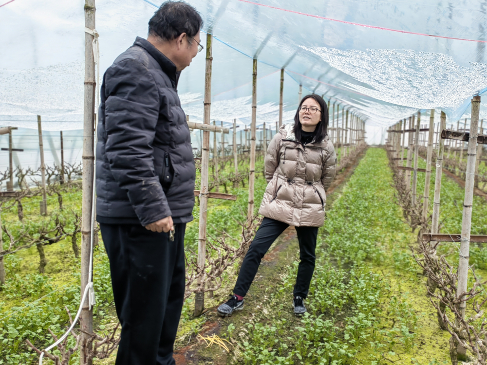 2024年1月30日,河北省农林科学院石家庄果树研究所葡萄团队杨丽丽研究员、褚凤杰研究员带领团队成员赴饶阳进行葡萄生产及灾后重建情况调研指导。
