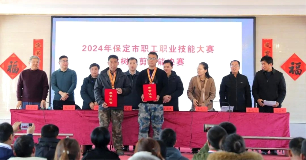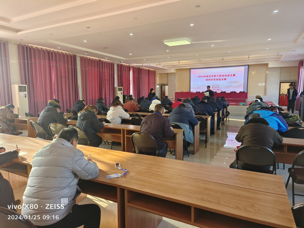 2024年1月25日,顺平环京津鲜桃绿色高质高效生产技术示范基地成功举办“2024年保定市职工职业技能大赛桃树冬剪技能决赛”。本次活动由保定市总工会主办,顺平县总工会、顺平县望蕊鲜桃农民专业合作社工会承办,河北省农林科学院植物保护研究所、河北省现代农业产业技术体系桃创新团队协办,来自保定市12个县(市、区)的36名果树技术能手参加了比赛,比赛包括果树修剪理论考试和现场修剪实际操作两部分内容,保定市各县(市、区)有关单位负责人及100多名果农、合作社社员现场观摩了技艺比赛。
