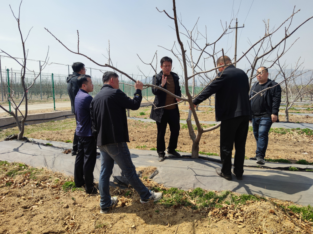 2024年4月7日,迁西县汉儿庄镇党委书记王晓庆、党委副书记李焱带同杨家峪村支书陈煜妗及果农代表一行9人来昌黎果树研究所科技创新基地就板栗新品种、新技术、新理念引进进行观摩学习。