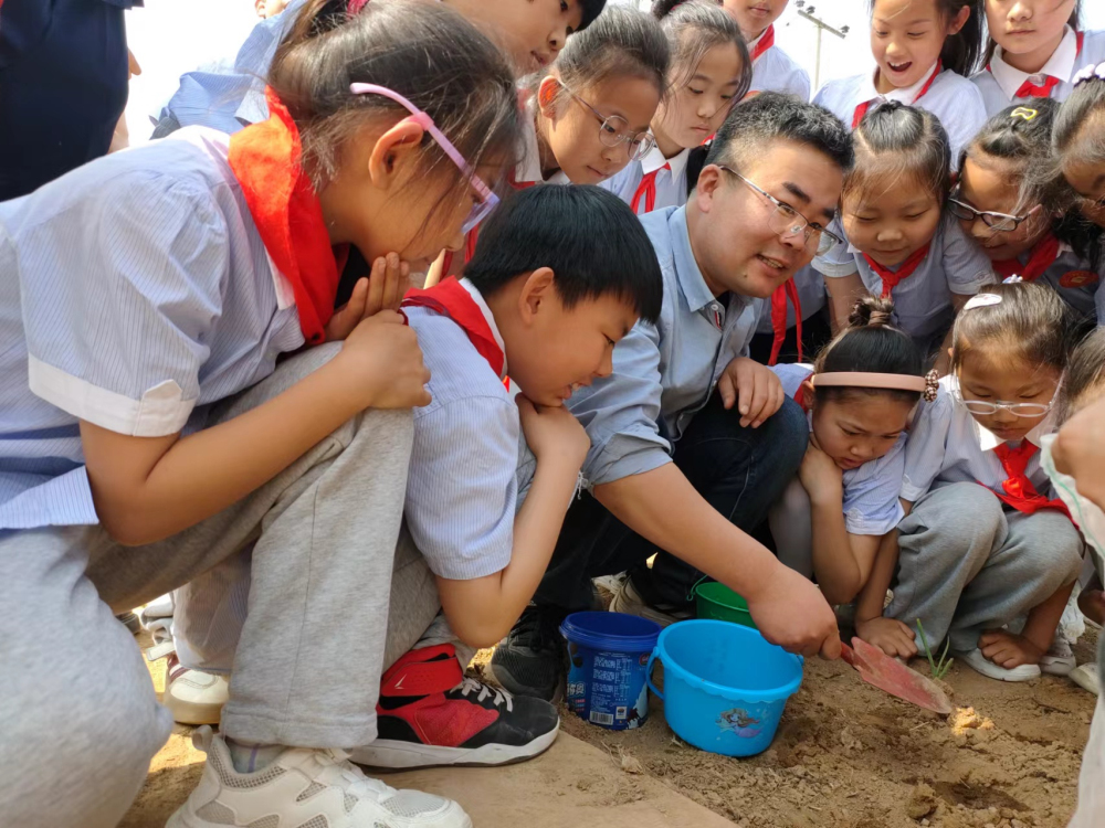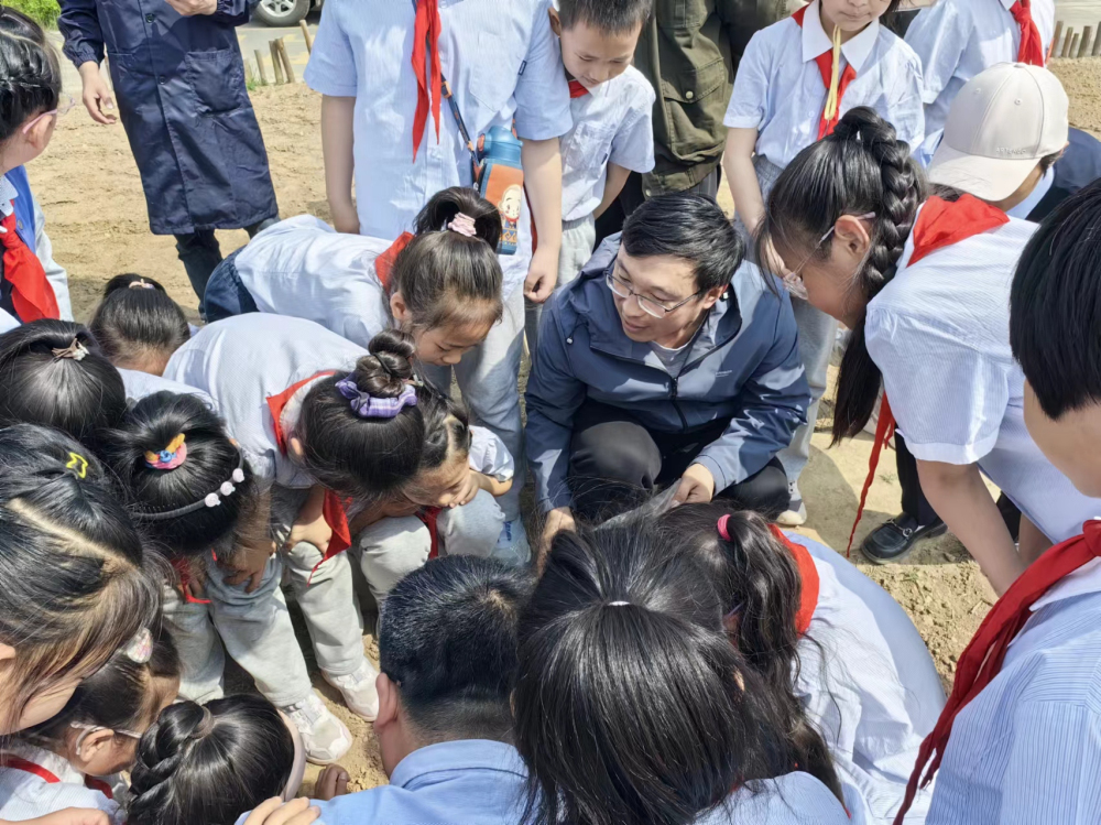 开耕仪式上,棉花所副所长祁虹致贺词,并代表研究所为第一实验学校颁发了“劳动教育实践基地”标牌。开幕式后,所青年工作委员会委员在实践田里为同学们讲授了棉花科普知识,并现场展示了棉花播种过程,手把手教同学们播种棉花,并为同学们分发棉花种子作为纪念。