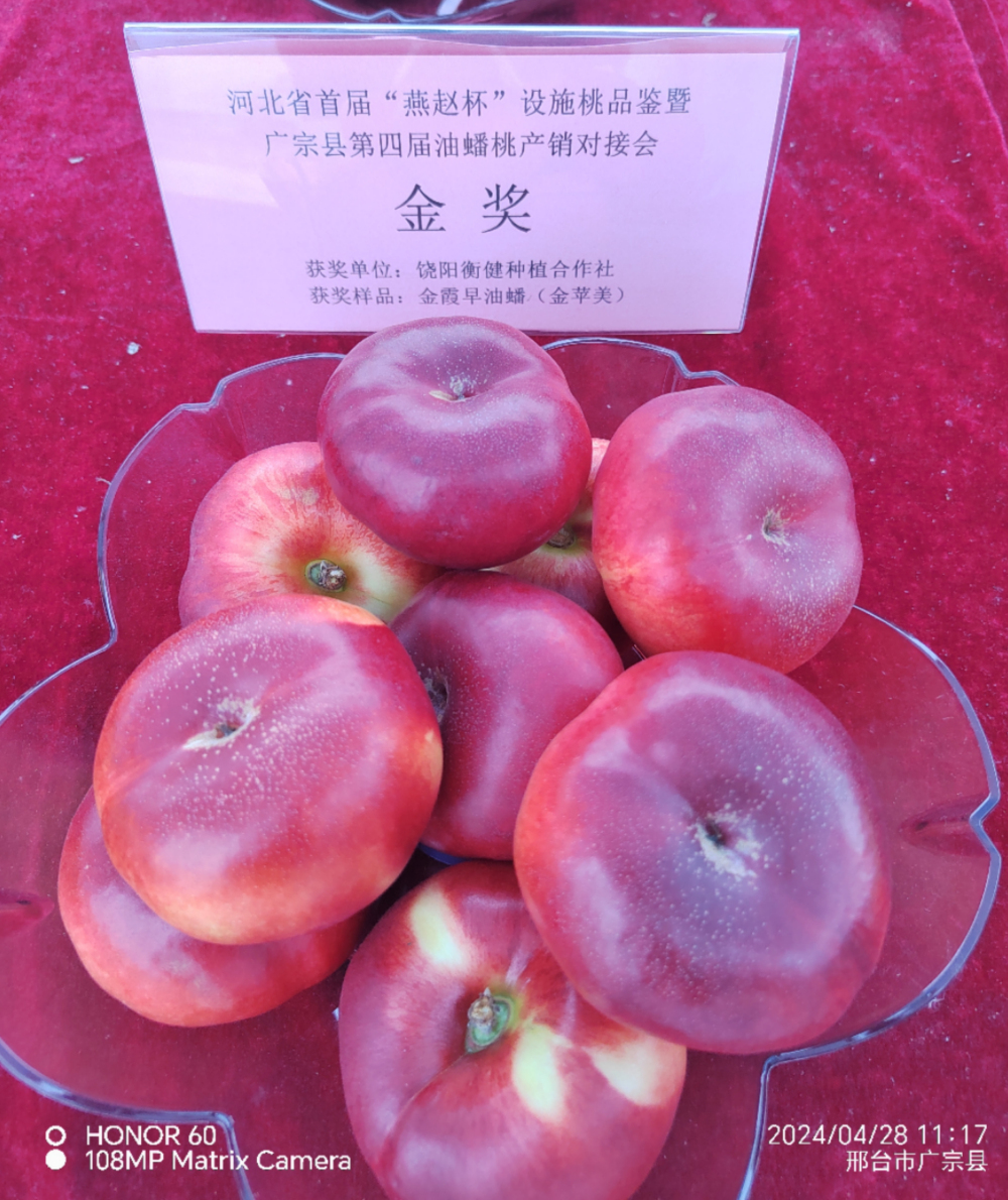 在省农科院旱作所、石家庄果树所、昌黎果树研究所和植保所及国家与省产业体系专家指导下,对接服务基地坚持绿色无公害种植理念,通过用有机肥和农家肥替代化肥和控水控肥限产提质,设施桃内在品质不断提升。2023年这几个基地选送的样品曾在全国设施桃大赛中获得3个金奖,2024年本次在本区域设施桃多数品种尚未成熟的情况下获得2金1银的好成绩,进一步体现了衡水地区设施桃以质量为导向发展的优势。