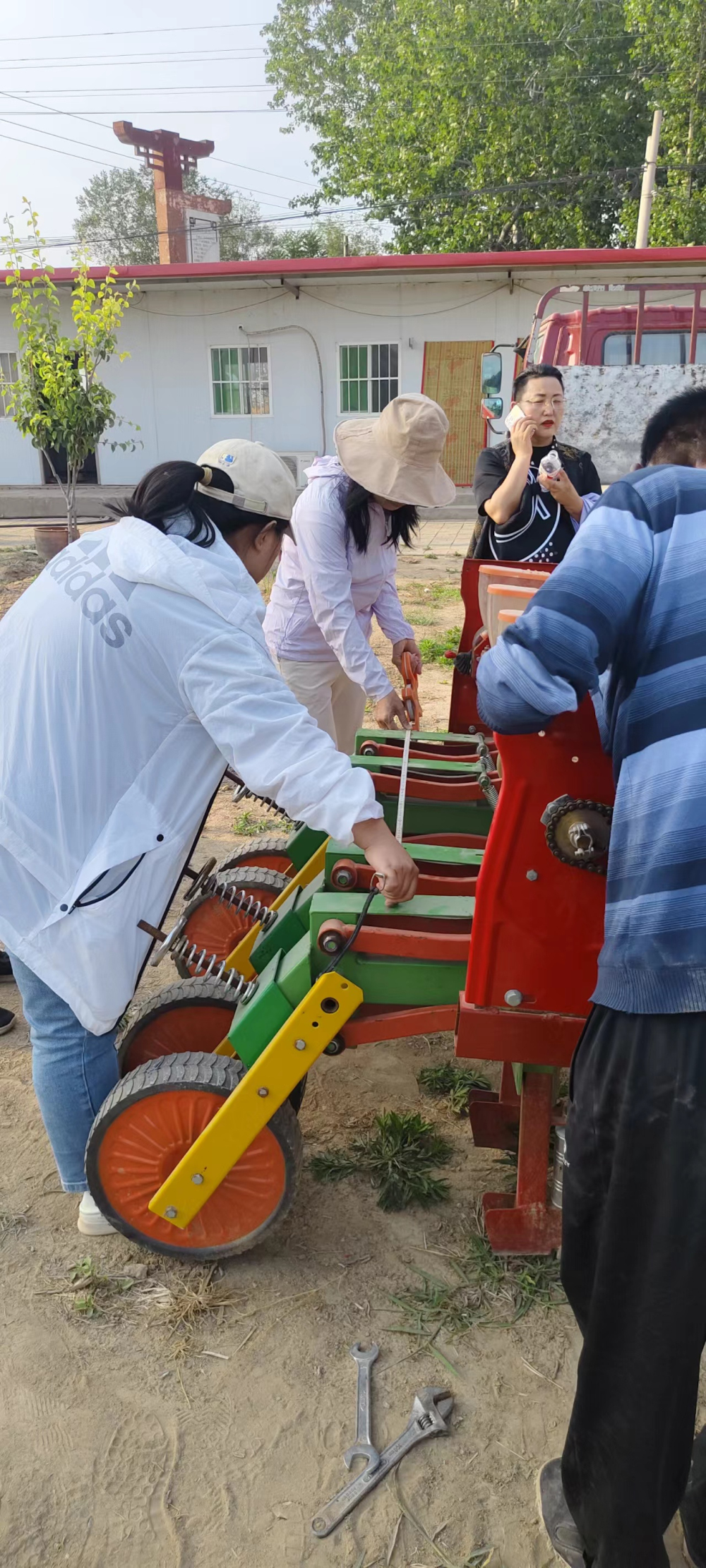 2024年5月29日,粮油所河北省现代农业产业技术体系特色油料创新团队芝麻胡麻选育栽培岗位专家、国家特色油料产业技术体系芝麻石家庄综合试验站站长徐桂真研究员及其团队成员到大名县孙甘店镇南李庄村开展芝麻百亩高产示范田的精量播种技术指导。本团队提供了芝麻专用的精量播种机,为适应配套的中耕培土除草机,实现芝麻全程机械化生产,采用宽窄行种植模式,设置宽行58cm,窄行24cm,对播种机进行了调试,进行足墒播种。每小时播种8亩,是人工播种效率的57倍,减少劳动力和种子、农药、化肥等农资的投入,而且种子均匀分布,播种深度一致,在播种环节实现了机械化全自动化,也为田间管理和收获环节实现机械化奠定基础。