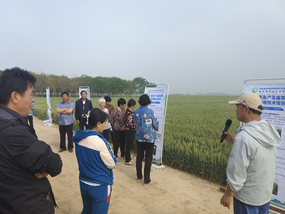 结合“2025年全国科技活动周和全国科技工作者日河北系列活动”,5月16日上午,旱作所专家深入景县秋实种植业农民专业合作社种植基地,举办“地下水压采区粮食作物单产提升示范培训会”。活动吸引了40余名种粮大户及合作社代表参与,通过“田间授课+现场观摩+互动答疑”的形式,为农户送去“科技及时雨”。