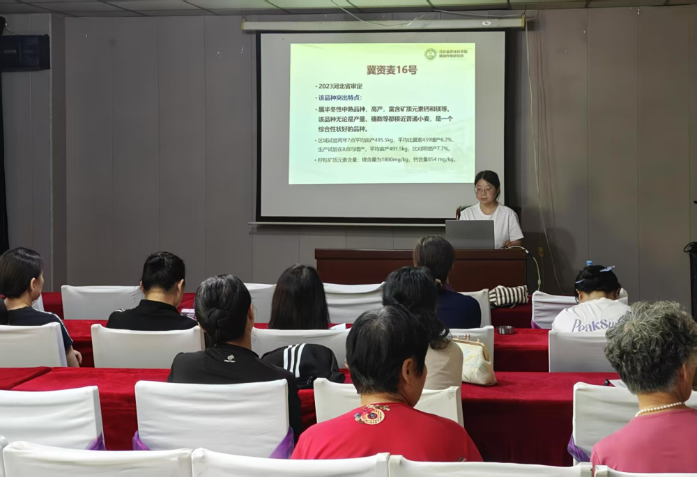 粮油所小麦中心资源研究室金京京博士介绍了黑小麦优异种质和栽培技术,重点讲解了冀紫439、冀资麦 16 号等主栽黑小麦品种的特性,以及与之相配套的栽培管理措施。同时强调,不同品种的黑小麦在生长特性、适应性和产量潜力上存在差异,种植户应根据自身的种植条件和市场需求选择合适的品种。培训内容丰富实用,为提高农民黑小麦种植管理水平、促进黑小麦增产增收奠定了坚实基础。