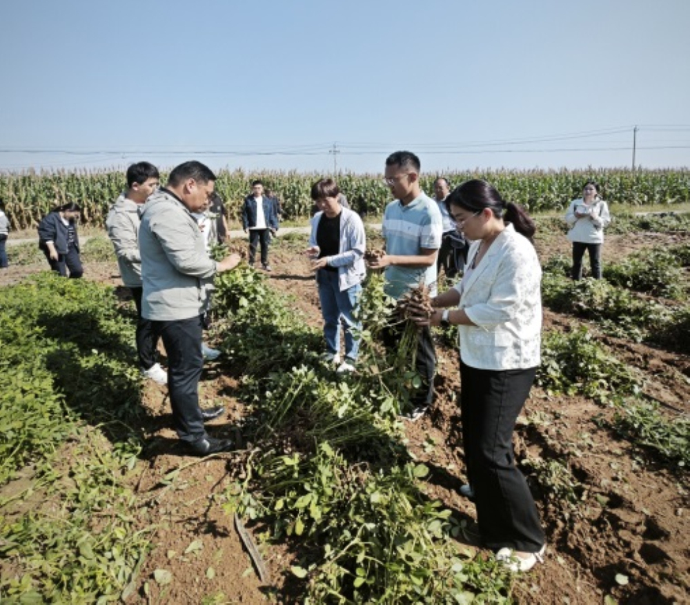 2025年9月25日,依托河北省花生产业技术体系衡水旱作节水综合试验推广站项目,旱作所在枣强县张秀屯镇枣强县广成种植专业合作社召开高油酸花生品种及节水高产高效栽培技术观摩会。会议邀请花生产业体系首席专家、相关岗位专家及团队成员、枣强县农业农村局、张秀屯镇相关领导、新型经营主体及种植大户30余人参会。