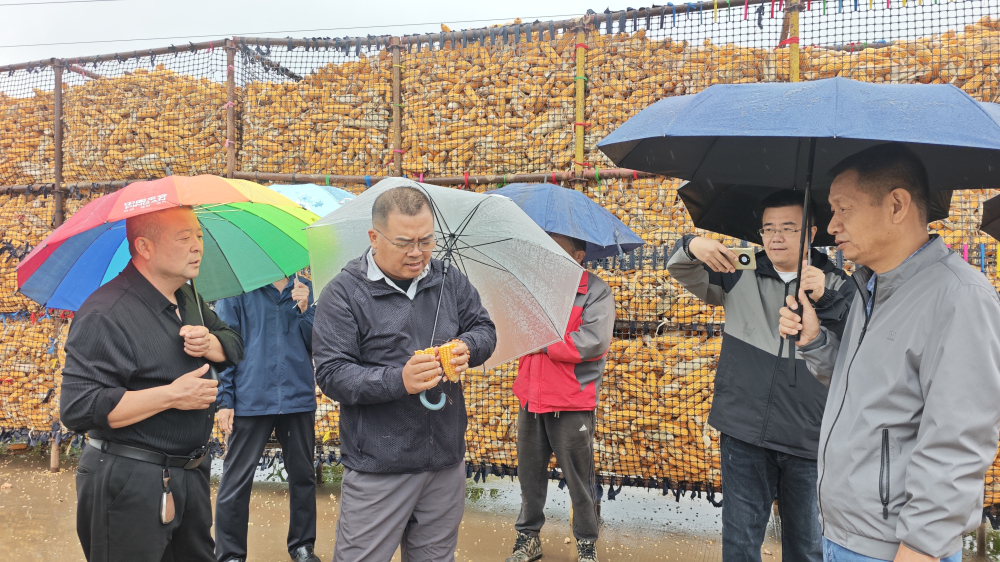 2025年10月10日,针对我省中南部地区连续降雨导致土壤水分饱和、地块松软,传统轮式收割机难以下地作业、玉米收获进程受阻等问题,我院粮油所组织专家赴赵县开展玉米收获应急性技术服务与调研工作。