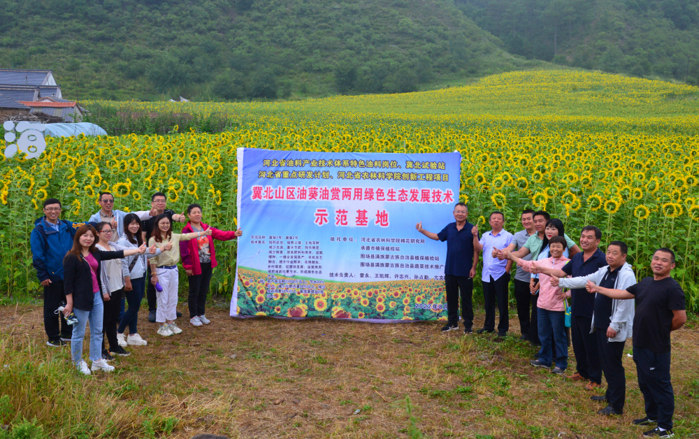 2023年以来,向日葵团队依据冀北地区的生态特点,以油用向日葵新品种为依托,不断优化创新配套栽培技术、引进新型农机装备,集成创新并示范推广了从品种筛选、土地深耕、地膜覆盖、精量播种、水肥一体、绿色防控、赏花观光、机械采收到精品加工的一套完整的绿色高效生产技术,通过轻简化管理程序、提高防控效果、增加水肥利用率、提升产品质量、创建优美场景,实现了集省工省力、减肥减药、精品生产、观光旅游于一体绿色高效生产。