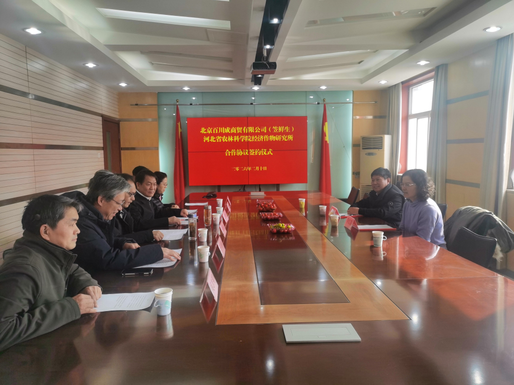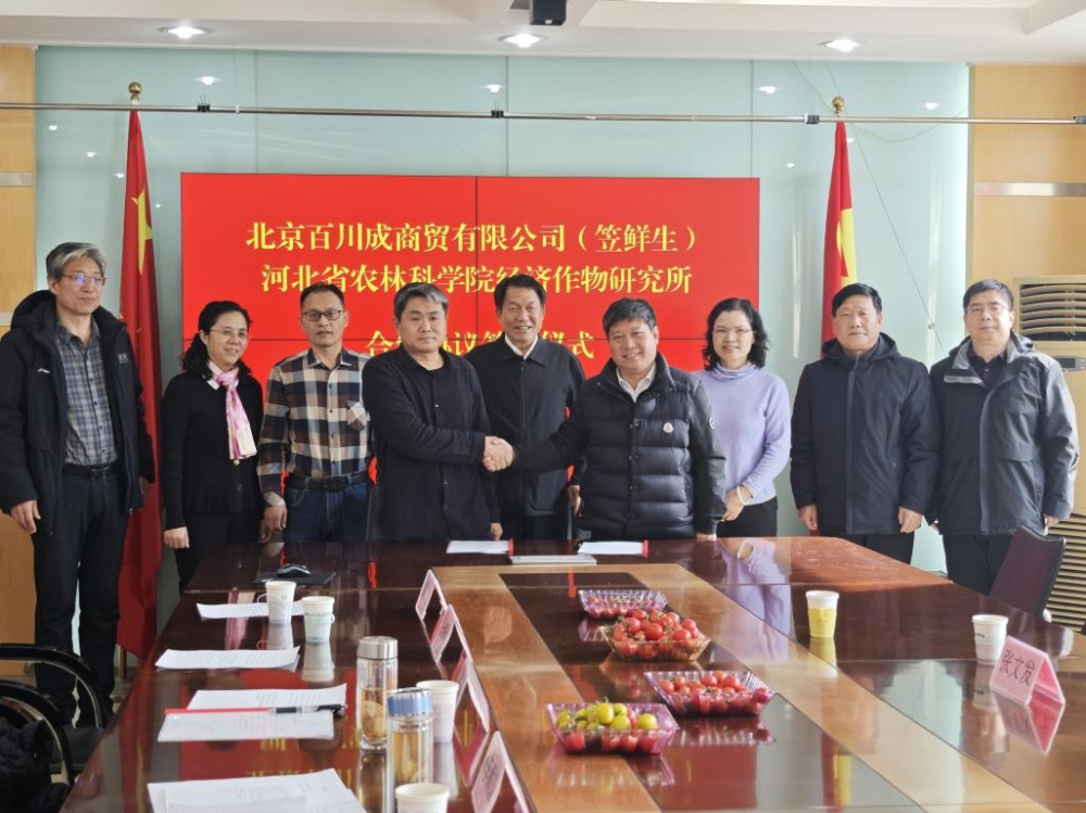 2月10日上午,河北省农林科学院经济作物研究所与北京百川成商贸有限公司科技合作签约仪式在我院举行。双方在前期深入交流与实地调研基础上,围绕番茄产业关键技术研发与示范推广达成广泛的合作共识,正式确立围绕“笠鲜生”高品质番茄产业发展的科技合作意向,共同推动高品质番茄标准化生产体系建设。
