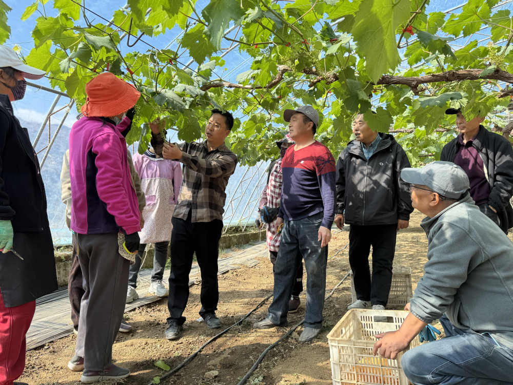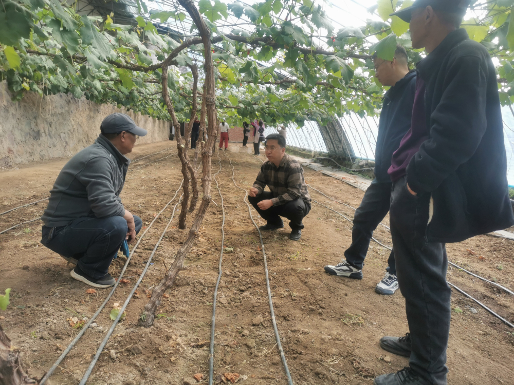 4月6日,葡萄研究室主任李敏敏副研究员和团队成员刘长江研究员到承德滦平新硕农业公司开展技术指导。首先,就疏果中存在的留果量偏大问题进行了纠正,讲解和示范了标准化果穗管理和疏果、打单层的技术要点;其次,在巡园中发现膨大期缺肥、缺水问题严重,就膨大期肥水管理技术进行了讲解,强调了高氮大水膨果的必要性,并将铵态氮、硝态氮、酰胺态氮混合配比进行了讲解;最后,针对新梢生长期枝头偏旺影响后端枝条生长的问题,给予了顶端新梢掐尖和扭梢的解决方案。此次指导正值葡萄生长的关键时期,有力保障今年稳产优质生产。