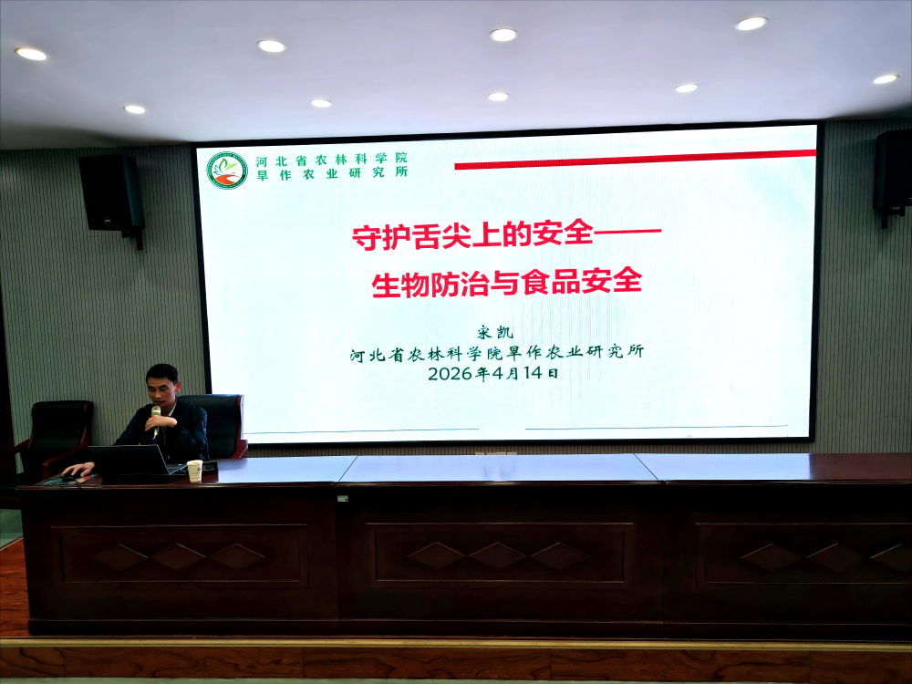 2026年4月14日,旱作所走进衡水市第二中学,开展“粮食安全”主题科普进校园活动,全校200余名师生参与此次活动。 植物保护专家宋凯研究员以《舌尖上的安全——生物防治与食品安全》为题,讲解植保技术发展历程,阐述生物防治在生态保护与食品安全保障中的重要价值;小麦育种团队沈椿才博士围绕《端牢中国饭碗:新时代的粮食安全观》,解读粮食安全核心内涵,分析我国粮食保障现状,并引导学生践行节约理念、助力粮食安全。 本次活动科普了农业知识,厚植了青少年粮食安全与生态保护意识。