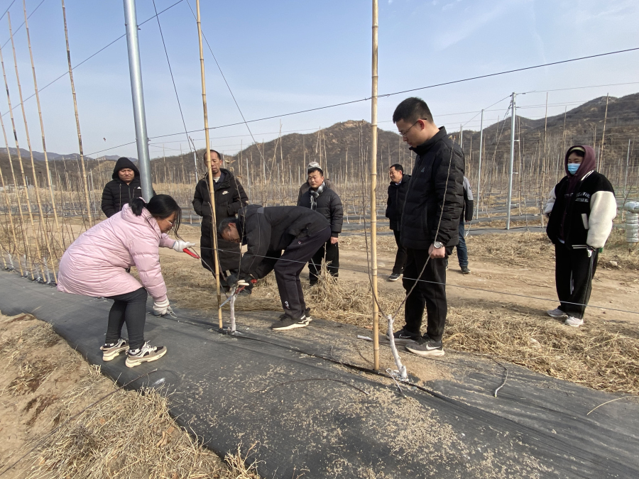 2023年新春伊始,石家庄果树研究所苹果栽培研究室专家深入果园一线,与平山县农业农村局紧密合作,协力促进“平山县山地苹果产业专项行动方案(2022-2025)”落实、落细。在新建园苗木品种选择、整地栽植、幼树整形修剪、肥水管理、病虫害预防等方面为多个园区制定了全年生产工作规划,并对园区技术骨干和果农进行了修剪技术培训,累计培训60余人次。