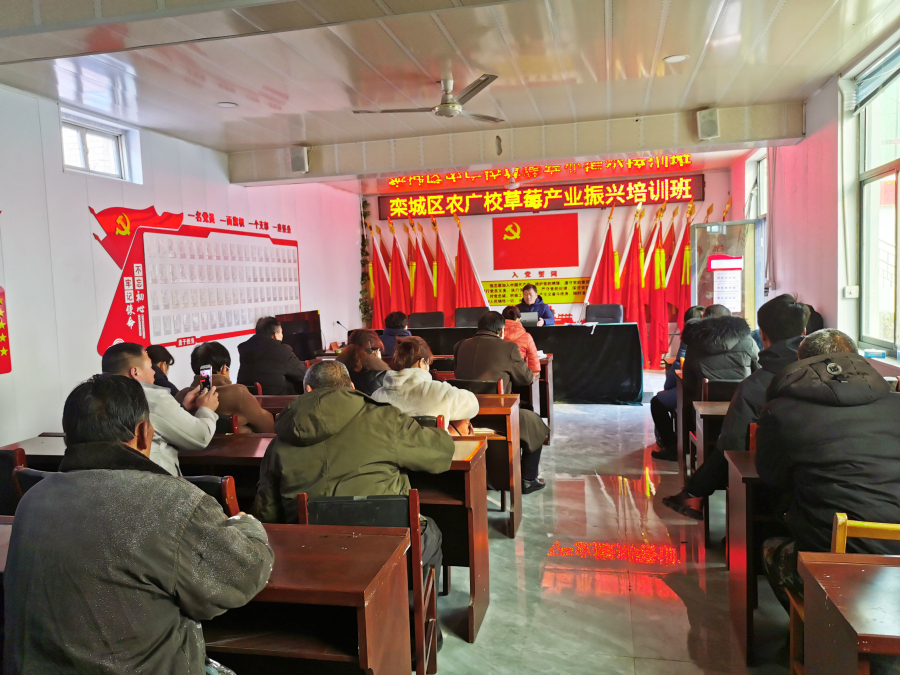 2023年2月15日,受石家庄栾城区农广校邀请,石家庄果树研究所草莓研究室杨雷研究员、李莉研究员到栾城区柳林屯乡范台村进行“草莓产业振兴培训”,为当地莓农讲解草莓全程绿色生产技术。