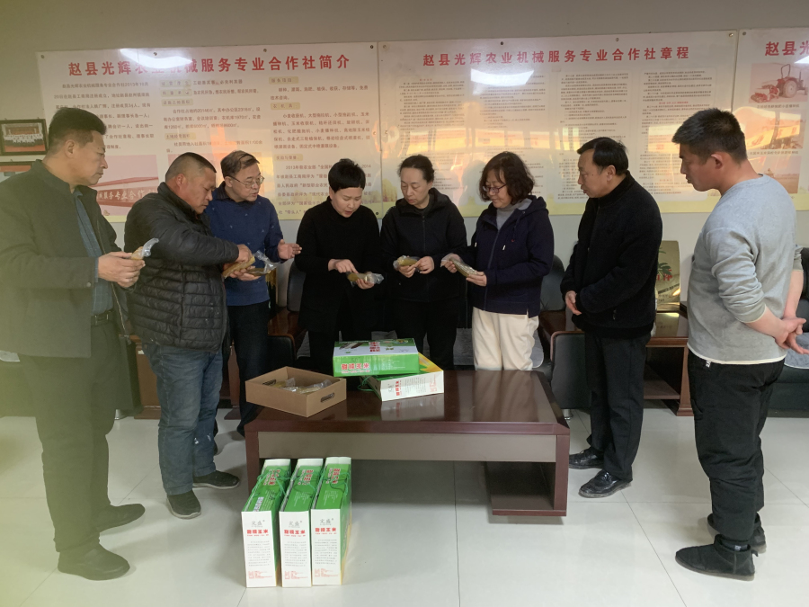 2023年2月20日,我院生物技术与食品科学研究所种质资源与分子育种研究室马春红研究员、石家庄市农林科学研究院玉米研究室朱彦辉副研究员、河北省农业机械化技术推广总站站长史家益赴赵县光辉农业机械服务专业合作社开展技术咨询。合作社理事长姚风娟、合作社种植经理李青、农机经理姚广辉、赵县农业农村局张辉平等人参加活动。