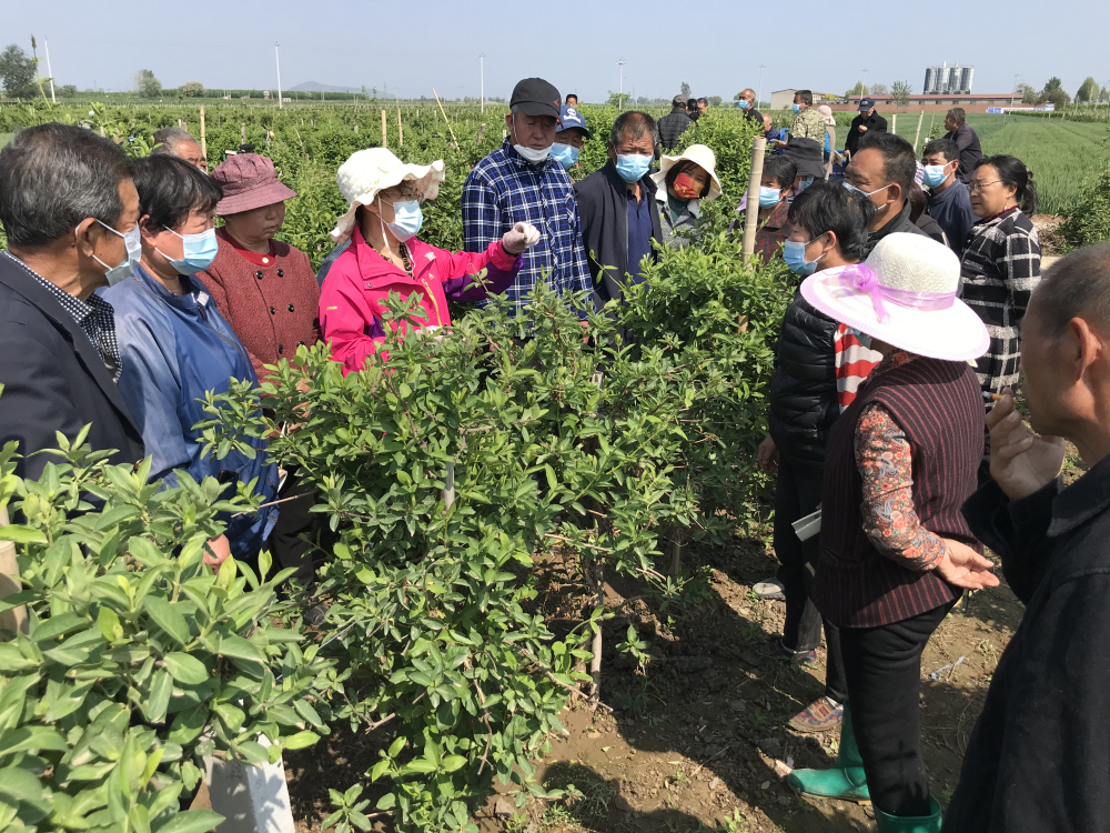 4月下旬气温回升,新芽萌发,正是金银花抽枝吐蕾的季节,但赞皇县南邢郭镇东风村的几百亩金银花树却出现了生长异常现场,村民们心急如焚。2023年4月25日生物技术与食品科学研究所及华研究员及其团队成员应邀来到东风村,对金银花生长异常情况开展实地调研和技术指导。