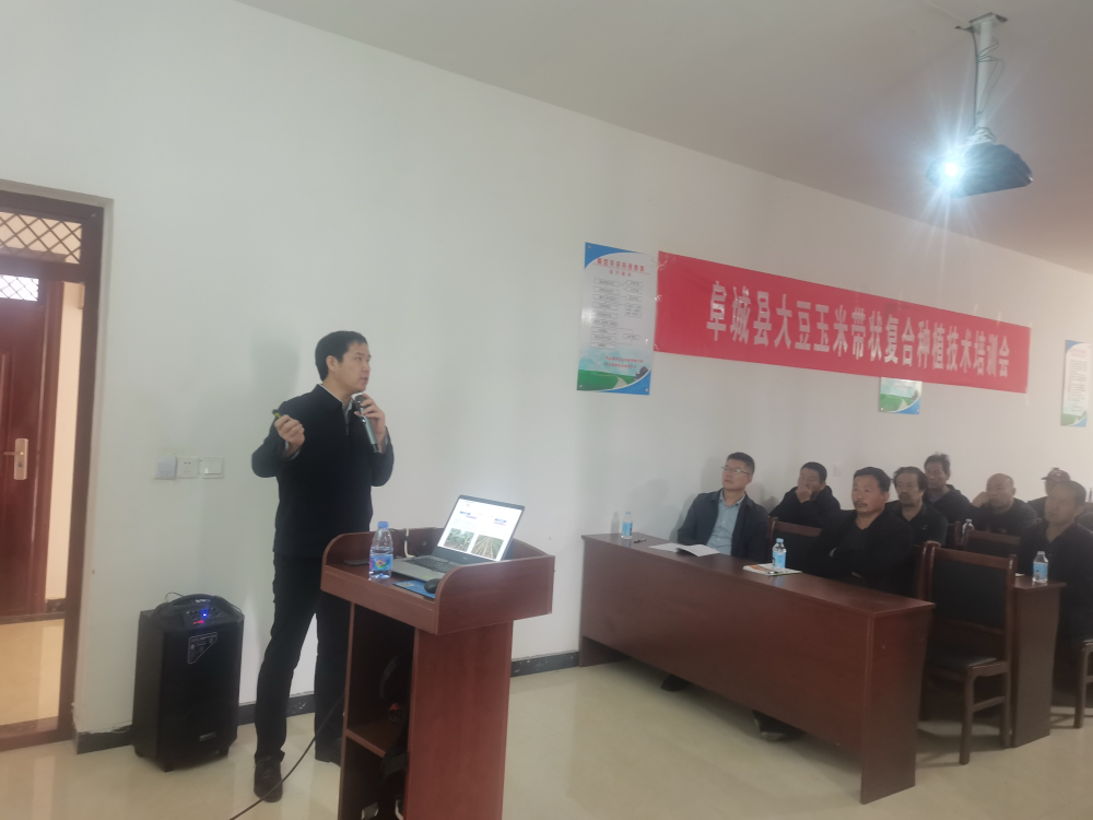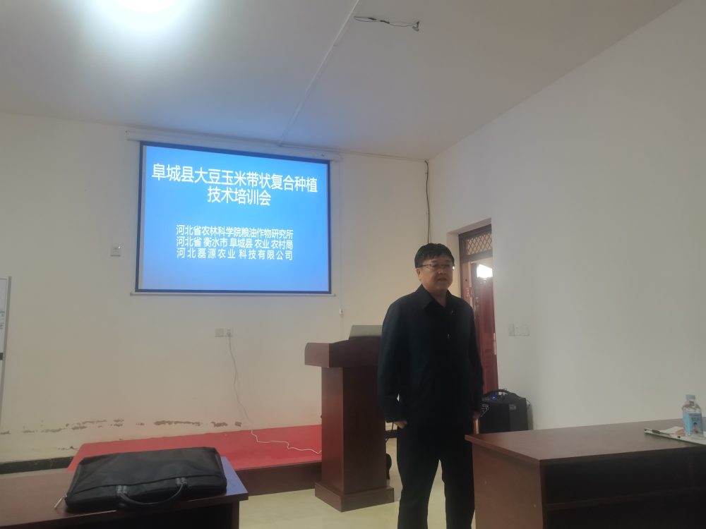 2023年5月6日,河北省大豆产业技术体系岗位专家、粮油所大豆中心刘兵强副研究员,粮油所大豆中心孟庆民副研究员赴河北磊源现代农业园区参加阜城县磊源农业创新驿站启动并开展大豆玉米带状复合种植技术培训活动。阜城县农业农村局张志强副局长、阜城县大白乡党委委员樊雪梅副乡长、河北磊源农业科技有限公司魏春林总经理出席,阜城县30余名种植大户参加了培训。