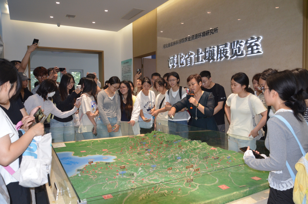 活动期间,王丽英研究员亲自带领师生们参观了河北省土壤展览室。在展览室内,王丽英研究员详细介绍了土壤起源、分类、功能、保护和利用等基础知识,并结合河北省的实际情况,讲解了河北土壤类型及综合利用现状。通过丰富的实物展示、图文资料及生动的讲解,学生们对土壤科学有了更为直观和深入的理解。
