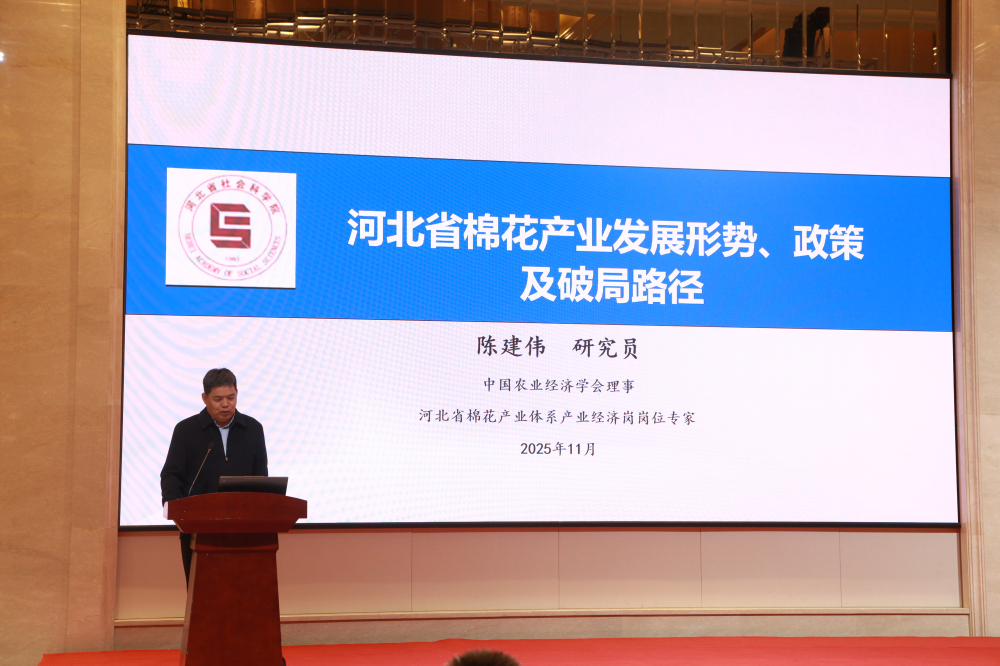 论坛邀请三位国内棉花领域具有深厚学术造诣与丰富实践经验的专家作主旨报告,以多维视角共谋产业未来。山东省农业科学院董合忠研究员系统梳理了我国棉花栽培技术的四次重大突破,重点阐述了我国品种技术的迭代升级对棉花轻简化、机械化生产的关键支撑作用。中国科学院微生物研究所吴家和研究员介绍了棉花生物育种相关前沿成果,展现了我国棉花种源自主创新的强劲动力。河北省社会科学院陈建伟研究员畅谈了“三链融合”发展策略,倡导推广“订单农业+期货对冲”模式,有效降低棉农市场风险,为产业稳定发展提供新路径。三位专家的报告内容丰富、前瞻性强,为河北省棉花产业稳定发展贡献了智慧与方案。
