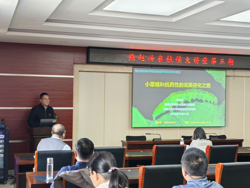 2026年3月31日,植保所组织召开“燕赵兴农植保大讲堂”第三期学术报告会。会议由所长郭庆港主持,全所科研人员、研究生及科研助理参加。