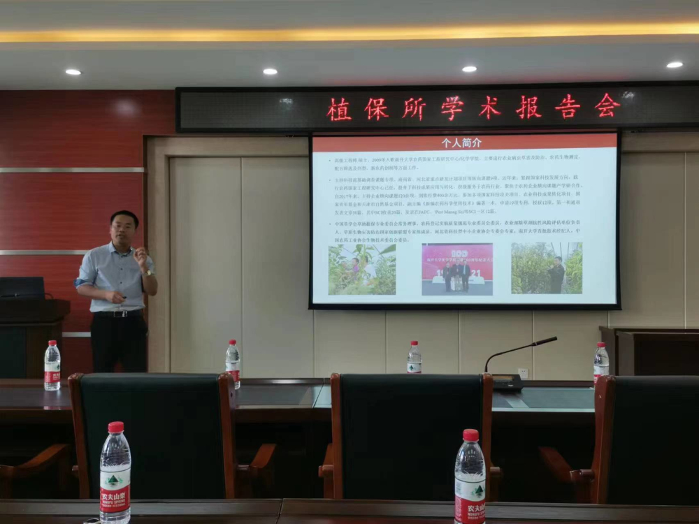 边强高级工程师做了题为“农药生物测定技术及关键点”的学术报告。报告首先对南开大学农药领域研究的起源、发展、中心组成及现有专家的研究方向进行了简要介绍,重点围绕除草剂、杀菌剂和杀虫剂的室内生物活性验证技术及其关键点进行了讲解。