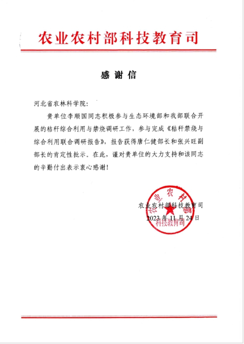谷子所杂粮栽培经济团队在国家谷子高粱产业技术体系产业经济岗位支持下,2023年智库工作也取得新突破。一是作为智库专家协助省农业农村厅获得国家谷子产业集群,规划了河北省谷子产业集群“四带一中心”布局,三年国家投资2亿元;二是借助国家谷子产业集群契机,为藁城区制定《藁城区现代农业产业园区(谷子)发展规划(2023-2027年)》,并应用实施;三是起草了“培育小米品牌助推产业发展”获得河北省人大副主任张妹芝肯定性批示,作为主要起草人起草“秸秆焚烧与综合利用调研报告”获得农业农村部唐仁健部长、张兴旺副部长批示,农业农村部科技教育司向我院李顺国研究员发来感谢信。今后,杂粮栽培经济团队继续围绕产业、政府、新型经营主体需求开展科学研究、决策咨询,助推我省及全国杂粮产业高质量发展。