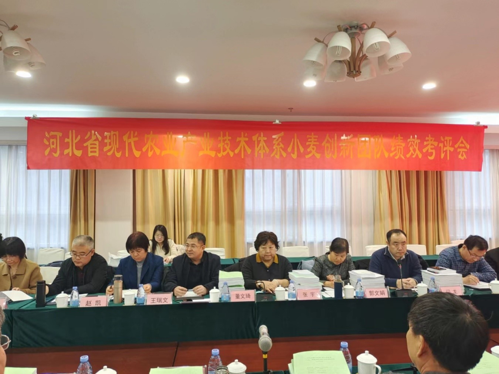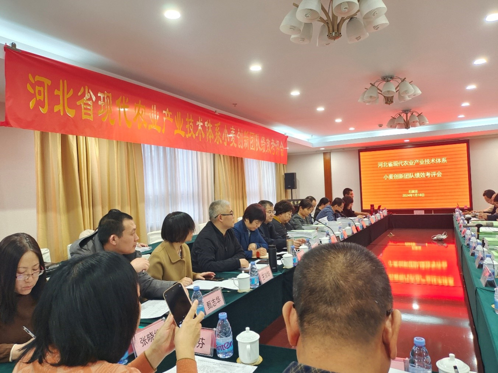 河北省现代农业产业技术体系小麦创新团队于2024年1月18日在石家庄召开了2023年度绩效考评会。会议邀请河北省农业农村厅科教处、种植业处、河北省农业技术推广总站、河北师范大学、河北省农林科学院旱作农业研究所、石家庄市农林科学研究院等领导和专家组成考评小组。我院科研管理部董文琦部长、粮油所闫龙副所长等领导出席了会议。创新团队首席专家李辉研究员、各岗位专家、试验站站长和团队成员共49人参会。会议由我院粮油所书记、河北省小麦体系首席专家李辉研究员主持并致欢迎词。