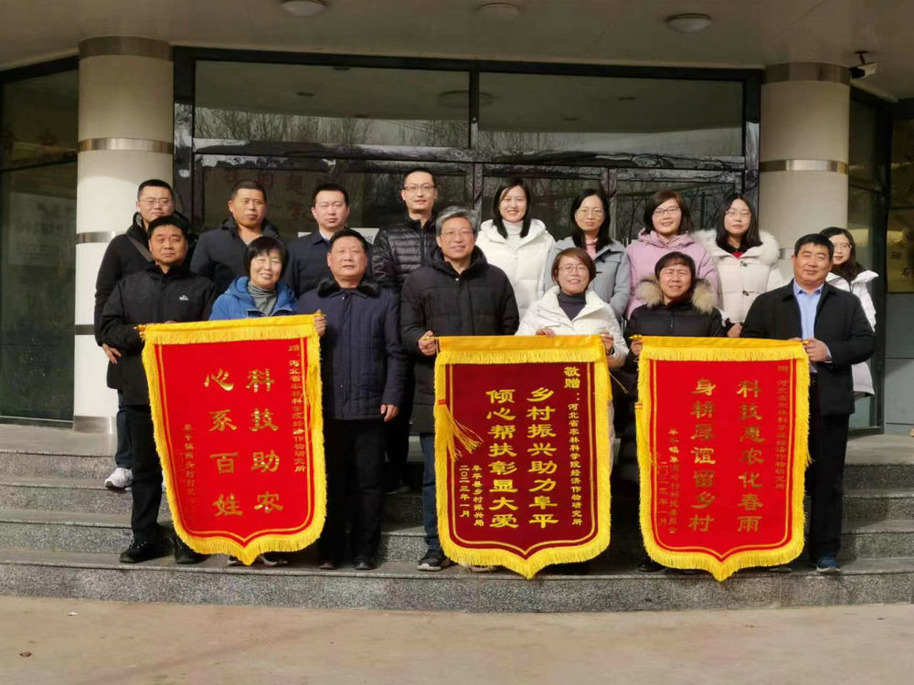 2023年1月17日,国家级乡村振兴示范县阜平县乡村振兴局刘文红局长带领台峪乡、阜平镇等一行六人专程到我院经作所赠送“乡村振兴助力阜平,倾心帮扶彰显大爱”锦旗,感谢经作所瓜类室团队2022年在阜平县阜平镇燕头村、东漕岭村等4个村示范推广西瓜、哈密瓜、茄子、甜椒等新品种及西甜瓜+叶菜高效套种模式取得成功,帮助村里发展集体经济,取得了预期效果,为阜平县精品瓜菜产业的绿色高质量发展提供了全方位科技支撑,同时助力阜平县在脱贫攻坚与乡村振兴战略实施过程中实现了无缝衔接,获批首批国家级乡村振兴示范县。