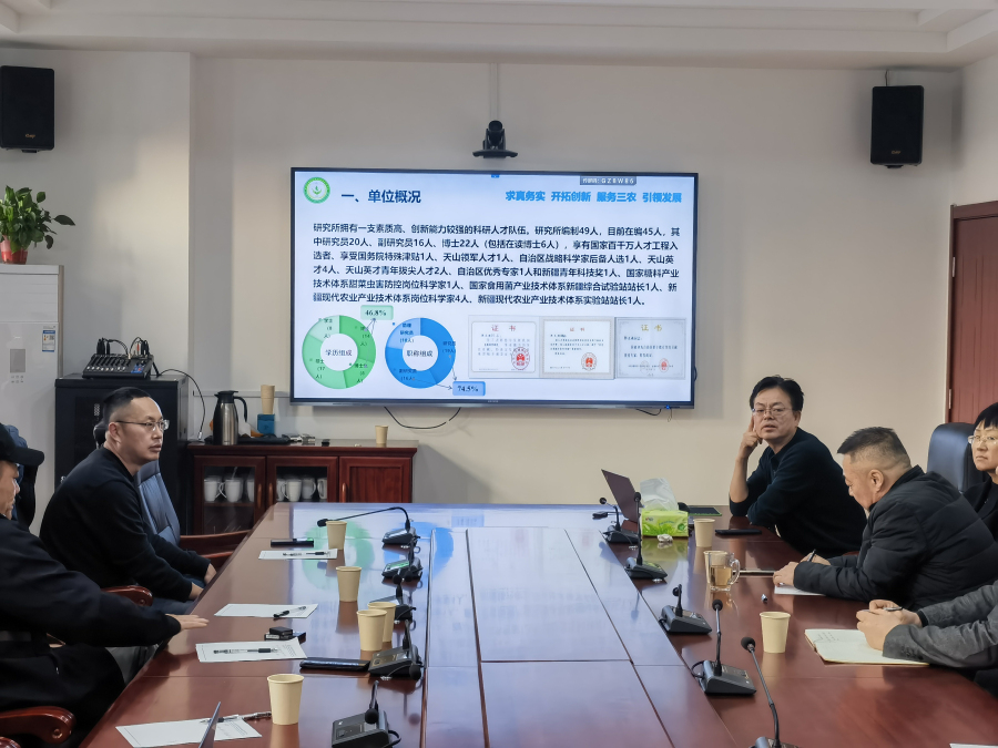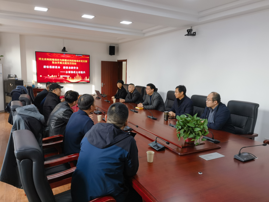 2023年2月15日,新疆农科院植保所所长郭文超研究员、总支书记李广阔研究员等一行六人到我院植保所联合开展“新征程心使命 新担当新作为”主题党日活动并进行工作座谈交流。中国农科院研究生院原党委副书记、副院长陈万权研究员,植保所党总支书记、所长马平,副所长陈书龙、蔡春锡、郭庆港及有关专家参加了座谈。