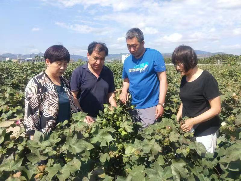 近日,省特色产业技术指导站副站长马立刚、省种子总站刘素娟研究员到棉花所海南基地考察指导。两位专家听取了科研人员的汇报,查看了南繁基地试验材料的种植和生长情况,对棉花所种质资源创制和育种进展给予了肯定,在机采、抗逆、优质种质创新和新品种选育方面提出了建设性的意见建议,并对今后育种方向给予了指导。