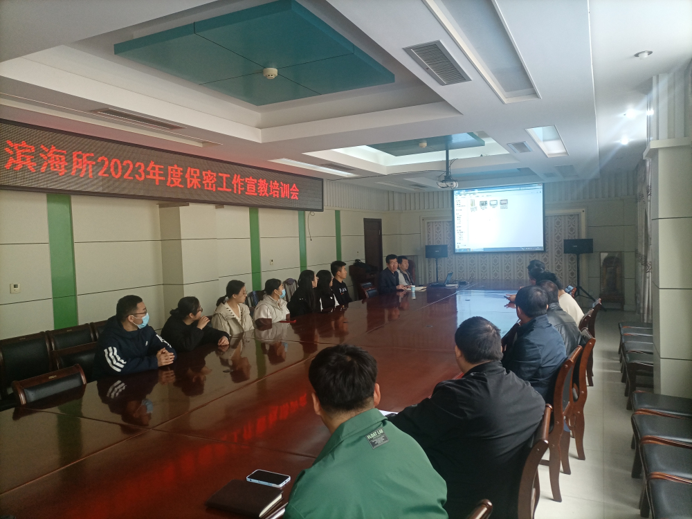 2023年4月13日,滨海所召开2023年度保密工作宣教培训会议。会议由滨海所副所长兼保密委副主任吴新海同志主持,所保密委成员、各科室主任及相关工作人员参加。