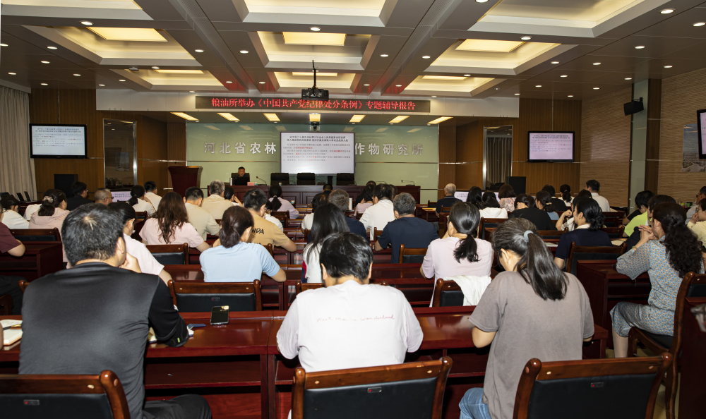 为了深入开展党纪学习教育,深化《条例》理解运用,2024年5月23日上午,粮油所邀请河北省社会主义学院赵岐山教授作了题为“《中国共产党纪律处分条例》解读”专题辅导报告。所党总支委员、副所长闫龙主持报告会。全所党员干部80余人参加了报告会。