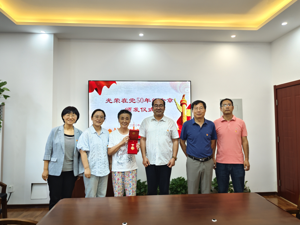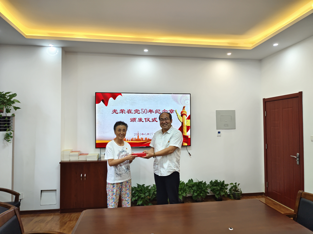 在中国共产党成立103周年到来之际,6月27日,植保所党总支为“光荣在党50年”的老党员颁发纪念章,向他们致以崇高敬意和节日祝福。植保所班子成员、各支部书记参加仪式。 仪式上,植保所党总支成员、副所长郭庆港为老党员王月鸾同志颁发奖章。王月鸾同志结合其亲身经历和所见所闻,回忆了为党和人民奋斗的难忘岁月和曾经走过的艰辛历程,畅谈研究所发展历史和取得的成就,感恩祖国、感恩党,对研究所的发展寄予厚望,表示作为老党员将继续发挥余热,为研究所的事业贡献自己的力量。