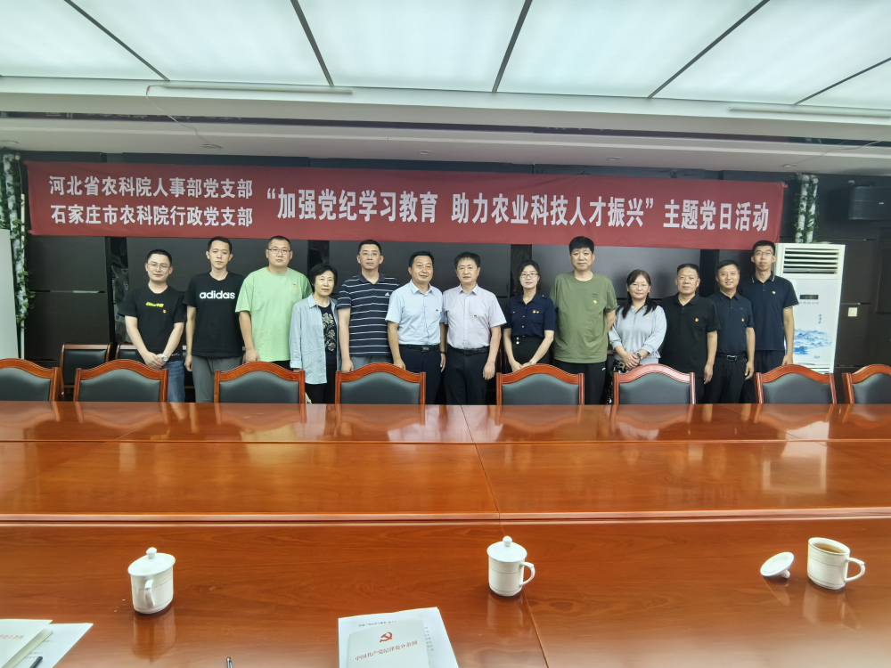 为深入贯彻习近平总书记关于全面加强党的纪律建设的重要论述,进一步增强党员干部的纪律意识和规矩意识,6月28日,河北省农林科学院人事部党支部与石家庄市农科院行政党支部联合开展了“加强党纪学习教育·助力农业科技人才振兴”主题党日活动。本次活动旨在通过集中学习和讨论交流,进一步强化党员干部的纪律观念,推动党建与业务深度融合,推进农业科技人才振兴。
