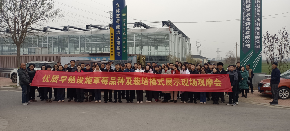 为进一步加快早熟设施草莓品种及栽培模式技术示范推广应用,提高草莓种植经济效益,促进草莓产业高质量发展,河北省农林科学院石家庄果树研究所联合石家庄市农业农村局,于2024年12月12日举办了优质早熟设施草莓品种及栽培模式展示现场观摩会。河北省农业农村厅特色产业处、石家庄市农业农村局、石家庄市各区县农业农村局相关领导,草莓生产、育苗、销售等企业、基地、合作社、种植大户代表,《燕赵农村报》等媒体记者及石家庄果树研究所领导班子及相关科技人员100余人参会。