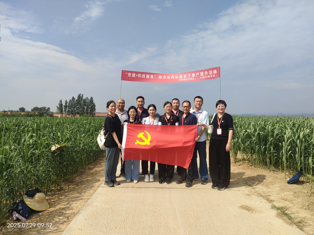 为深入学习贯彻党的二十届三中全会精神,推动党建与科技服务深度融合,7月29日,院科技成果转化部支部、综合部支部,谷子所科研支部与中国作物学会秘书处支部在山西省长治市沁县开展了“党建+科技服务”联学共建活动,通过现场观摩、技术研讨、产业调研等形式,为谷子产业绿色高质量发展注入科技动能。中国作物学会秘书徐莉、欧小雪,院科技成果转化部、综合部、谷子所负责同志等40余人参加了此次活动。