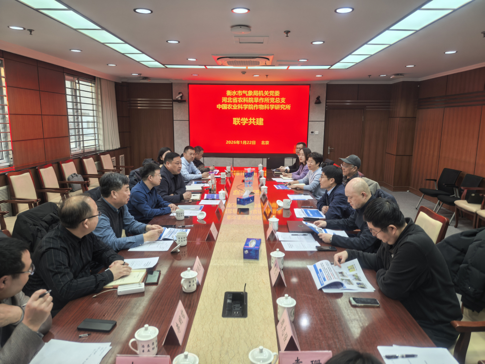 2026年1月22日,河北省农林科学院旱作农业研究所联合衡水市气象局,由旱作所党总支书记李伟带队赴中国农业科学院作物科学研究所开展联学共建活动。作科所副所长王文生研究员及相关研究团队参加交流活动。