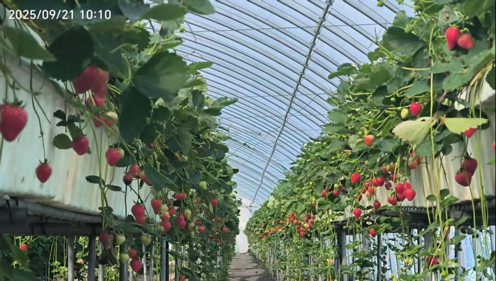 为了助力我省四季草莓绿色生产及综合效益提升,河北省农林科学院石家庄果树研究所草莓研究团队在张家口市崇礼区及保定市涞源县建立四季草莓绿色生产技术示范基地,示范推广四季草莓新品种及绿色生产技术。选用石家庄果树研究所自育的优质、抗病、丰产、耐贮运四季草莓新品种‘冀香’,结合农业防控、物理防控及生物防控等绿色生产技术,生产优质绿色果品,填补夏秋季市场无优良鲜食草莓品种的空白,对于提高草莓产品质量、实现草莓鲜果周年供应及增加莓农收益具有重要意义。