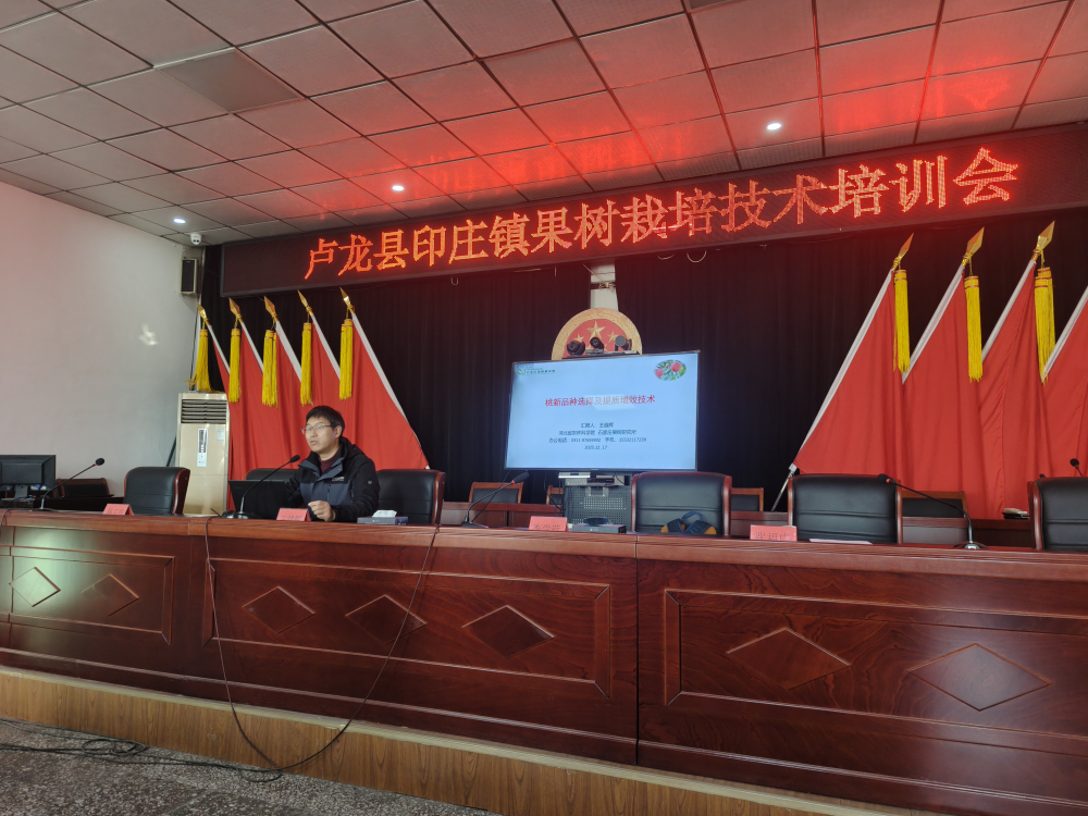 2025年12月17日,应秦皇岛市卢龙县农业农村局邀请,石果所宣立锋副所长一行3人到卢龙县开展苹果、桃技术培训及现场指导,农业农村局杨玉华副局长、刘海峰科长等陪同指导。
