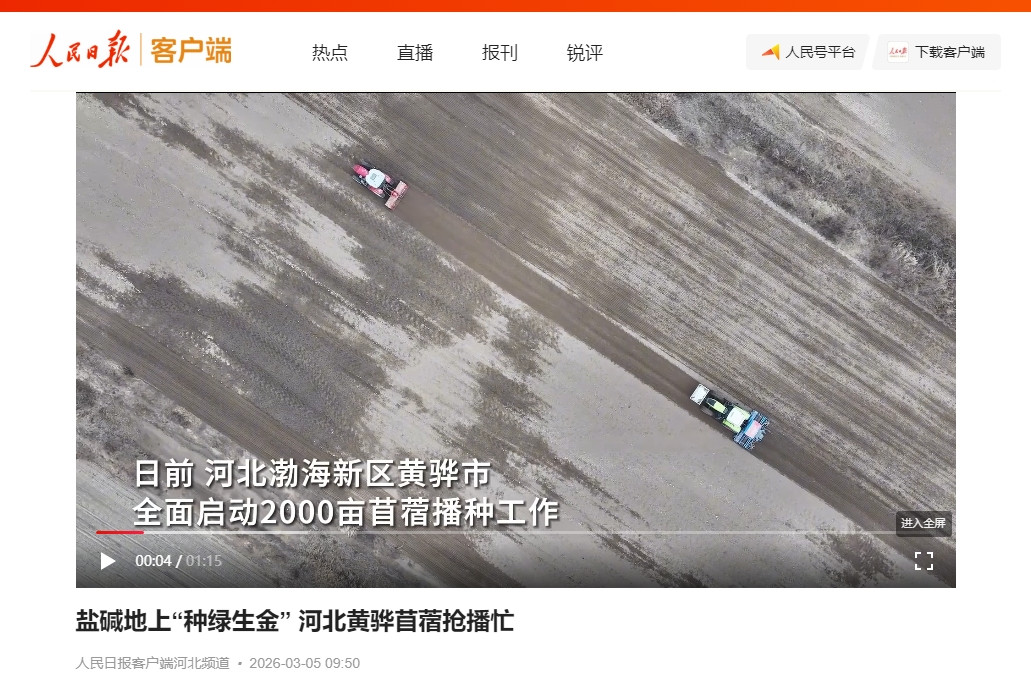 盐碱地上“种绿生金” 河北黄骅苜蓿抢播忙