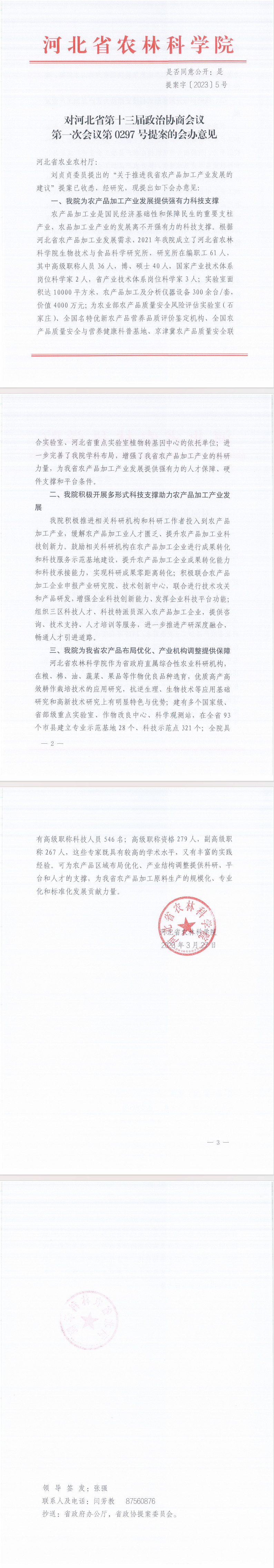 对河北省政协第十三届一次会议第0297号提案的会办意见--(关于推进我省农产品加工产业发展的建议)