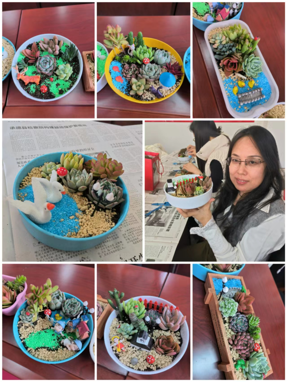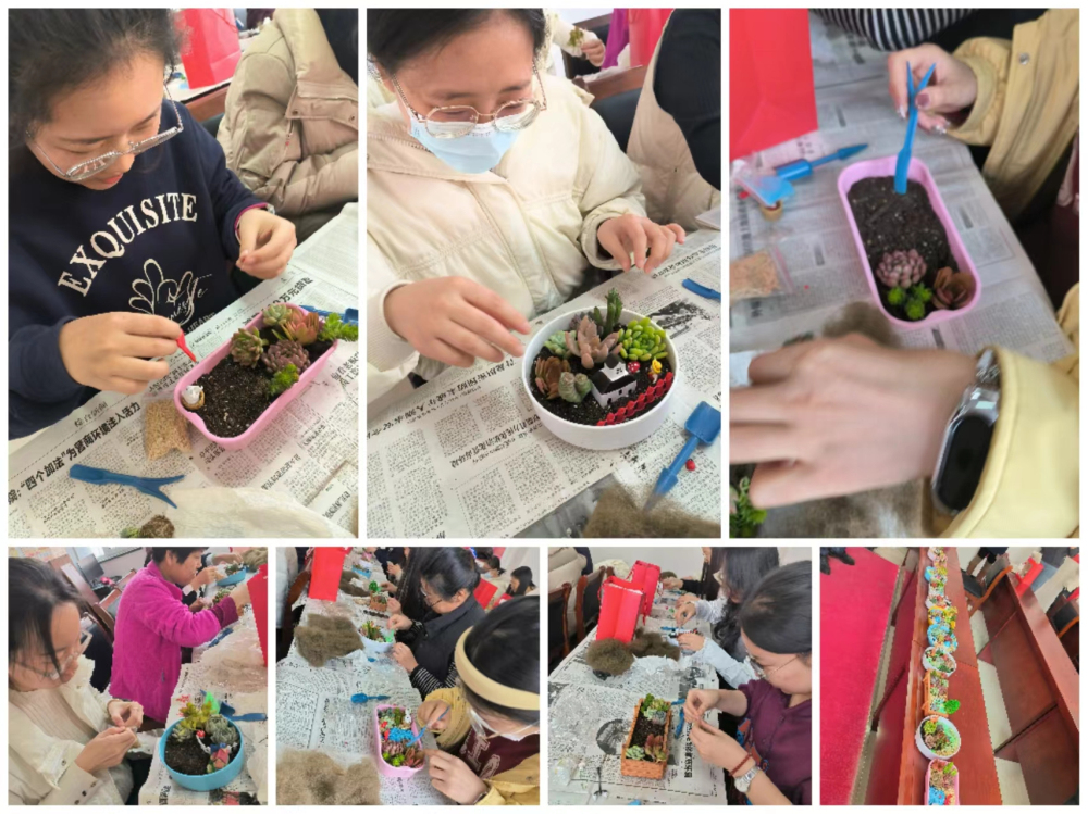 为庆祝第114个“三八”国际劳动妇女节,3月7日下午,滨海所召开以“展芳华,创未来“为主题的全所在职女职工大会。党总支书记、所长刘善资以及全所20位在职女职工欢聚一堂,共同庆祝这个特殊的节日。刘善资代表党总支向广大女同胞致以节日问候。为了更好地展示女性的魅力和风采,让大家度过一个充实愉快、富有意义的节日,所工会安排了精彩的多肉组合盆栽微景观DIY活动。大家别出心裁,各具风格,在各种装饰物的的点缀下,创作出了一个个精致巧妙的盆景,描绘出了对未来美好生活的期许和向往。