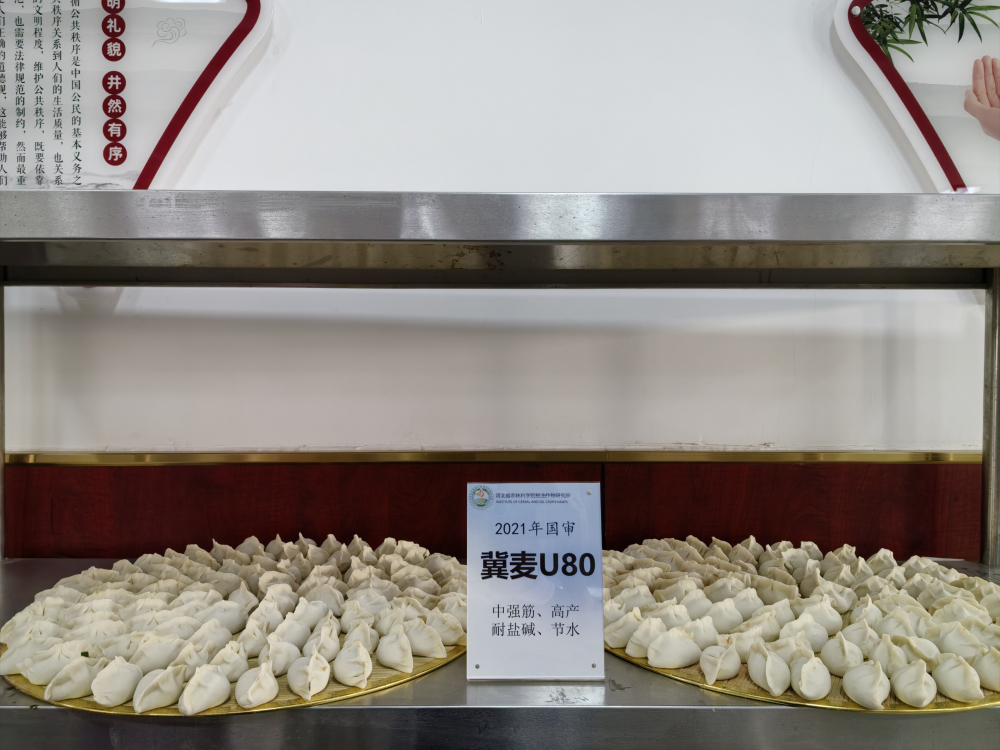 职工食堂为大家准备好了工具,和好了软硬适中的面团,调好了营养美味的馅料,各部门志愿者分工合作,有人负责擀皮,有人负责包馅,多组人员齐头并进,团结协助。一盘盘饺子鱼贯成行,有象征五谷丰登的麦穗饺,有寓意花好月圆的月牙饺,有象征吉祥如意的元宝饺。在一片欢笑声中,结束了这次包饺子活动。粮油所小麦育种研究室为本次活动提供了优质小麦品种冀麦U八〇面粉,科研工作者们吃上了自己研发的品种,都赞不绝口,更增添了干事创业的动力。