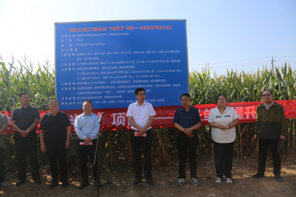近日,旱作所举办院县科技合作“吨半粮”——玉米单产提升工程现场观摩会,旱作所所长鲁关立、景县副县长李博参加活动。