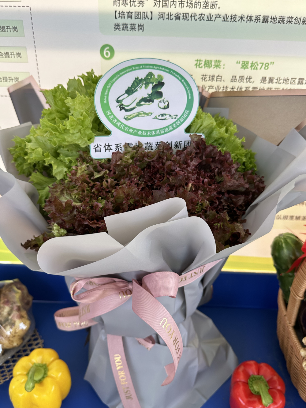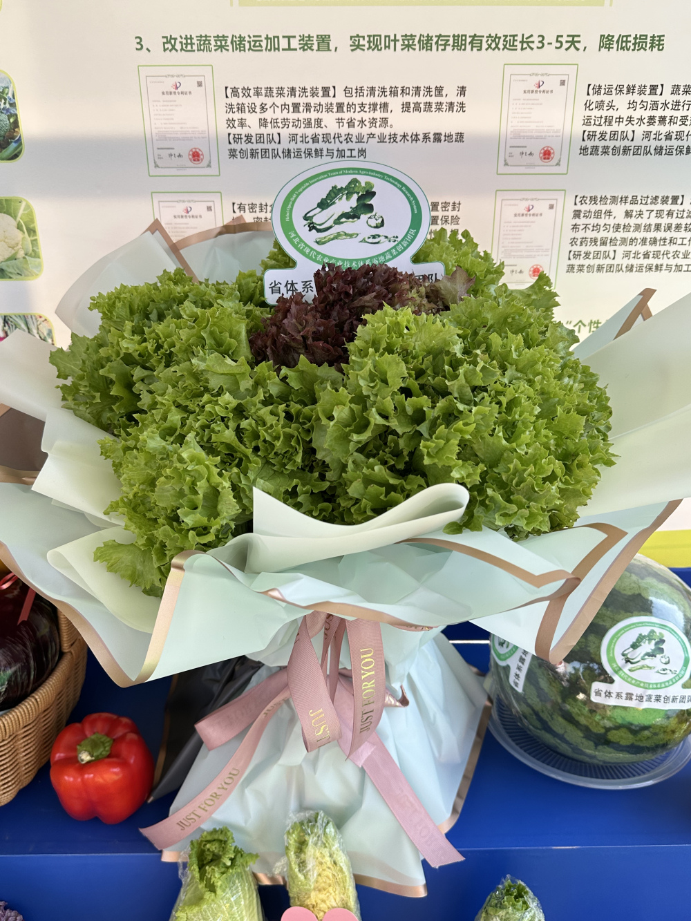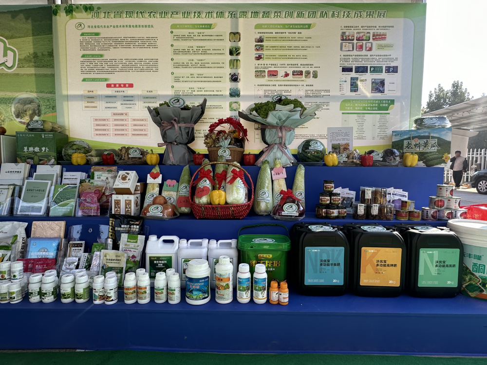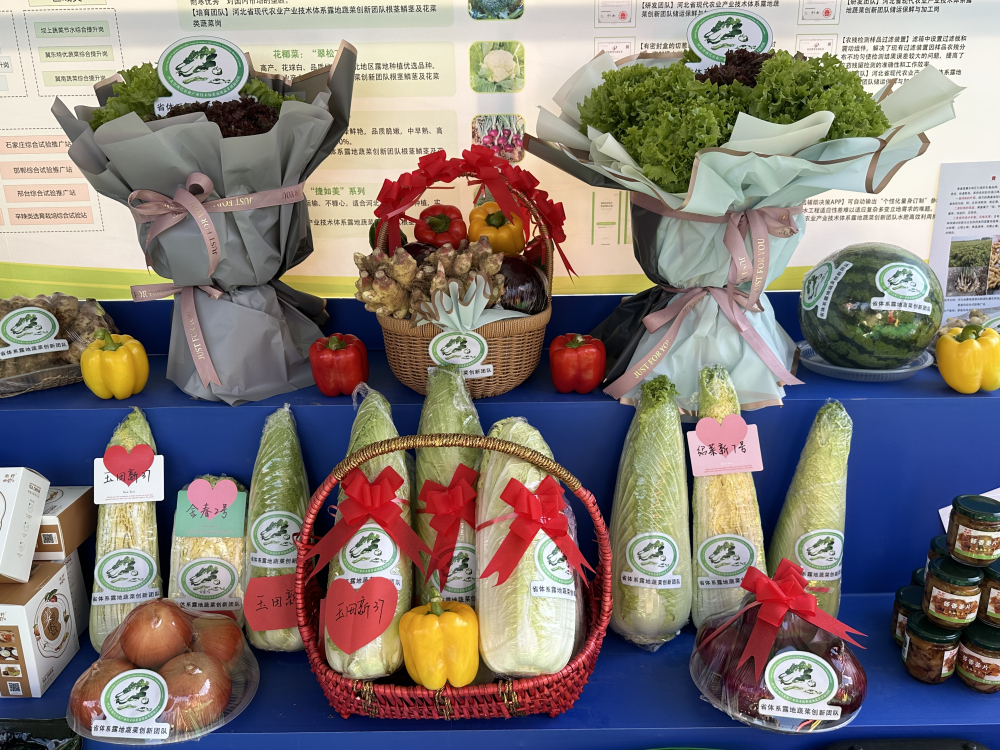 在特色农产品巡展环节,露地蔬菜创新团队举全体岗站之力,展全面科技之果。在展台上,布设生产实用型书籍展区、优质种子展区、绿色有机肥料农药等农用物资展区、特色鲜明农产品及加工产品展区以及个性化创意包装展区。团队创新研发的科技成果得到相关领导的好评。