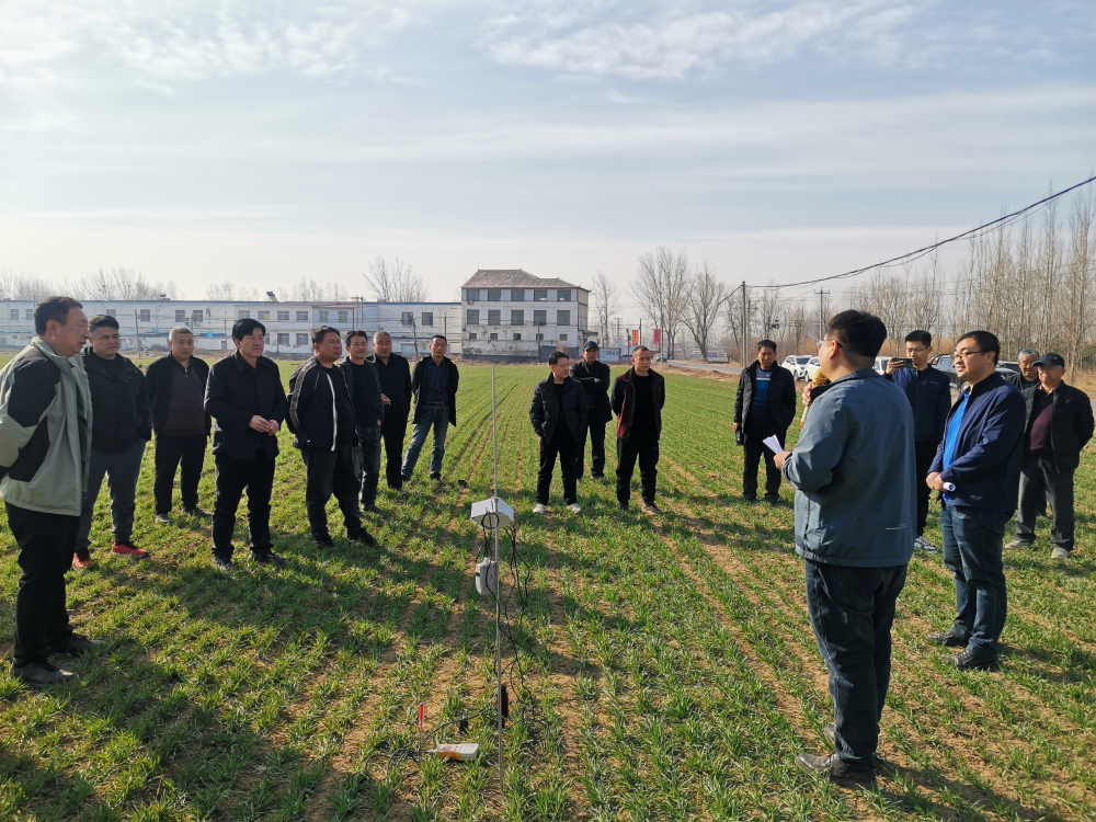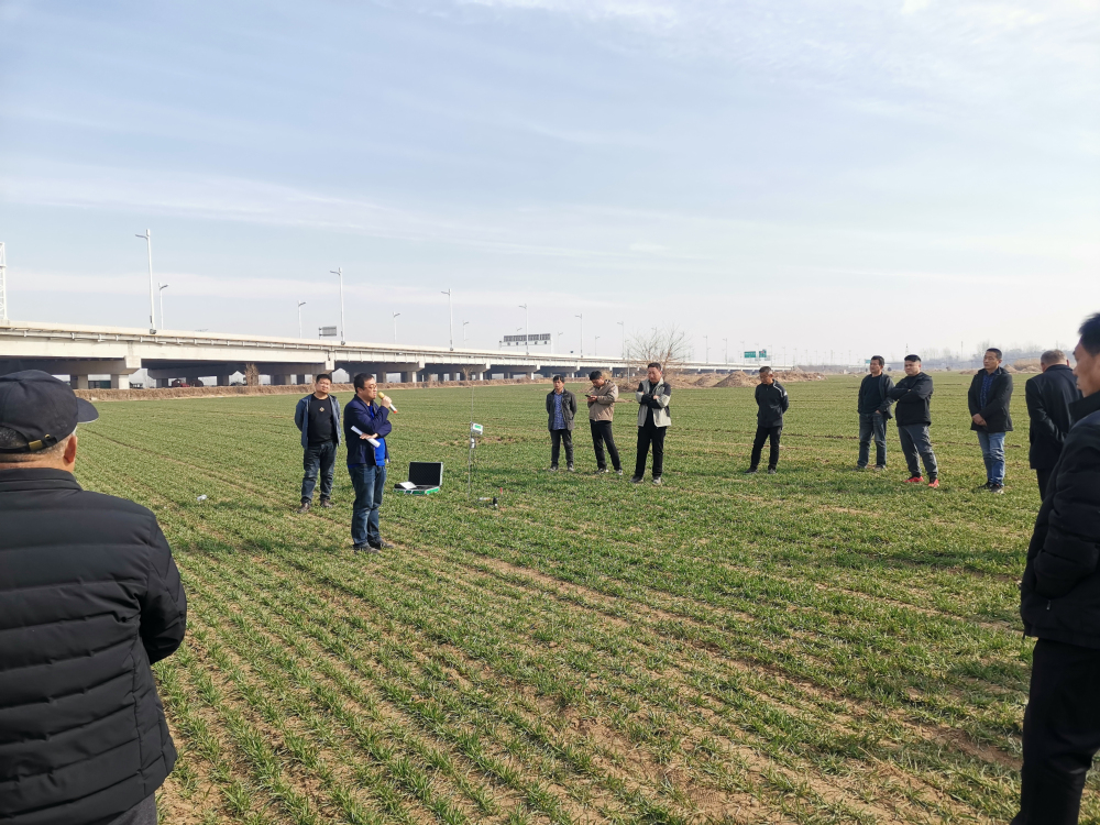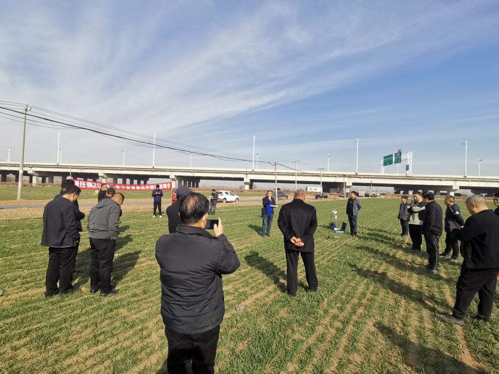 特派员采取田间现场指导的方式为农户讲解返青期苗情分类管理、弱苗促壮及病虫草害防治等技术,同时也对该地区容易发生的倒春寒、根茎部病害等问题进行专题讲解,并对当地种粮大户提出的具体问题,进行了详细分析,提出指导意见,解决小麦生产上技术难题,为农户发放小麦病虫草害防治技术等学习资料。高碑店市农业农村局、泗庄镇政府相关领导及当地种植大户约40人参加培训活动。