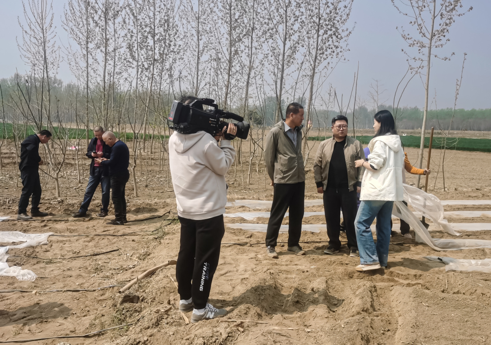 2024年4月11日,河北省玉米产业体系鲜食玉米与加工岗位团队成员粮油所高增玉研究员和李魁英陪同河北省电视台农民频道农博士在行动栏目组一行三人驱车前往定兴县张里村指导种植户早春覆膜种植冀糯系列鲜食玉米。