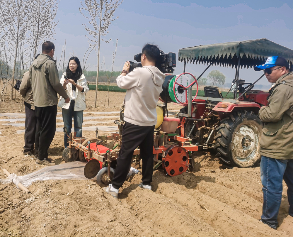 在播种现场,高增玉研究员接受农民频道记者采访,详细介绍了冀糯系列甜加糯型鲜食玉米品种特性和田间管理技术,并对早春覆膜种植实现鲜食玉米果穗早上市和一年两茬种植表示充分肯定,由于该种植基地位于保定北部,气温略低于正定县,建议该地区种植户早春适当延迟(不早于3月20日),晚夏播适当提前(不晚于7月20日),力争获得好收成。