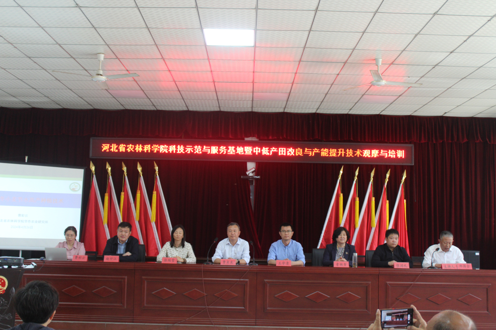 2024年4月26日,资环所在枣强县组织开展了中低产田改良与产能提升技术观摩培训会。活动由国家项目首席专家、资环所副所长贾良良研究员主持。我院成果转化部相关负责同志、资环所、旱作所相关科研人员,衡水市土肥站、农技推广站,枣强县农业农村局、新屯镇政府和各新型经营主体等相关单位领导、专家、农技人员、种植大户及新型农民等130余人参加了观摩培训会。